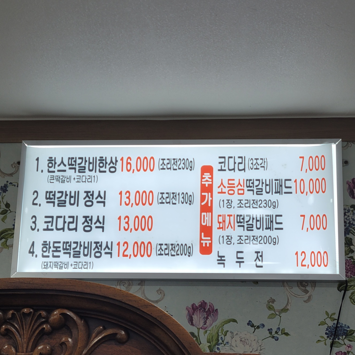 | 1번 (한스떡갈비한상[큰떡갈비 + 코다리찜1]) - 16,000원 |